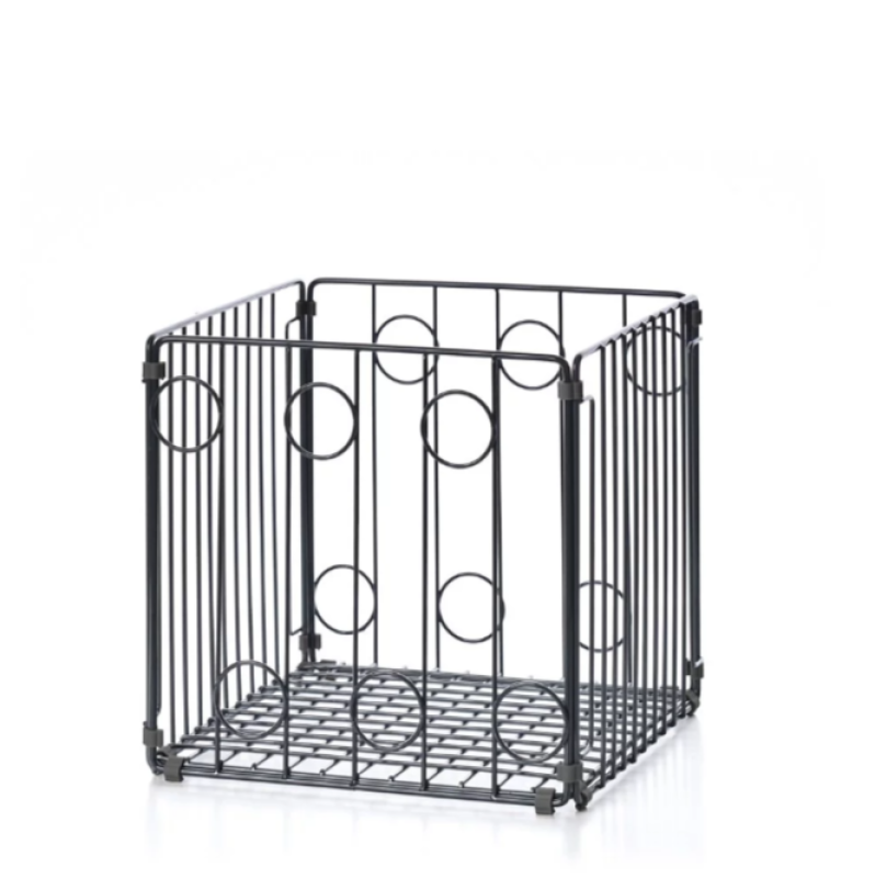 厝內自由組鐵線收納籃不但保留了台灣傳統建築的記憶,更利用專利扣件將窗花片材從平面變成立體空間,可依照不同收納需求自由組裝成想要的鐵線籃。